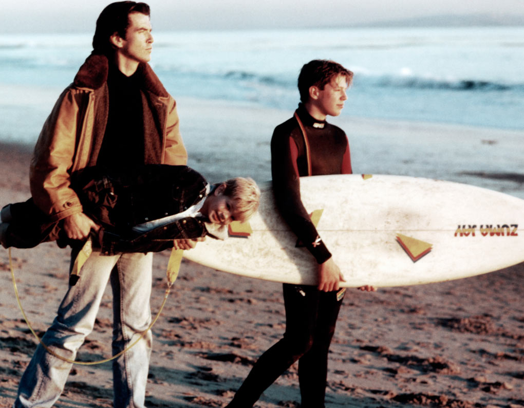 PIERCE BROSNAN Malibu 1988 The little boy pretending to be Pierce's surfboard is Sean Brosnan, Pierce's son with Cassandra Harris. With them, older half- brother, Christopher Brosnan. Not a word was spoken, but somehow father and son knew what would break me up.
